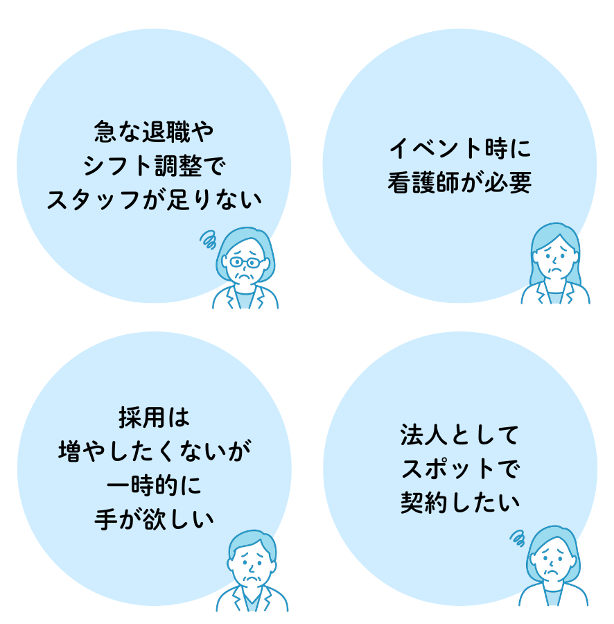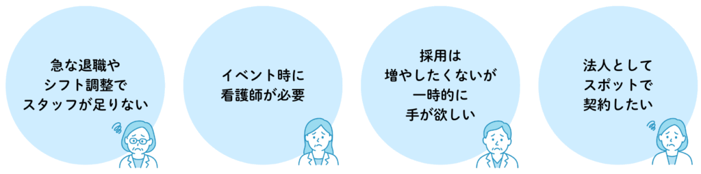 看護師の給与計算や社会保険手続きなどの労務管理は不要で、必要な時に必要な分だけサービスをご利用いただけます。